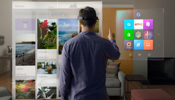 Bereits VR-Brillen wie die Oculus Rift klingen nach Science-Fiction und können ein Single-Heimkino sehr gut ersetzen. Microsoft jedoch geht mit der HoloLens noch einen Schritt weiter. Statt virtueller Realität arbeitet Microsoft an der sogenannten augmented reality (kurz: „AR“). Das bedeutet nichts anderes, als dass virtuelle Versatzstücke mit der tatsächlich gesehenen Realität verknüpft werden – es werden also Bilder in das Sichtfeld des Nutzers eingeblendet, mit denen interagiert werden kann. Ähnlich arbeitet auch Googles umstrittenes Google Glass, allerdings blendet Glass nur ein sehr kleines Infofenster in das Sichtfeld des Anwenders. HoloLens hingegen nutzt das gesamte Sichtfeld, um der Realität virtuell Dinge hinzuzufügen.