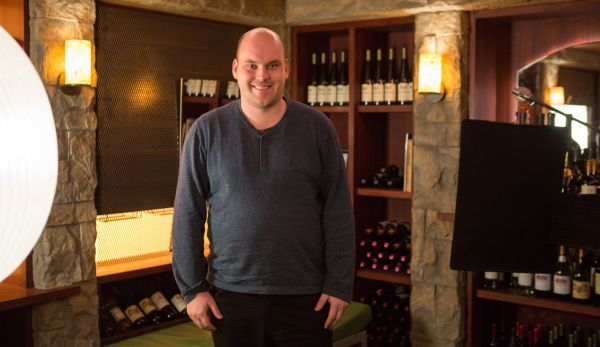 FILMSTARTS-Redakteur Christoph Petersen im Weinkeller von Bald-Knasti James King (Will Ferrell).