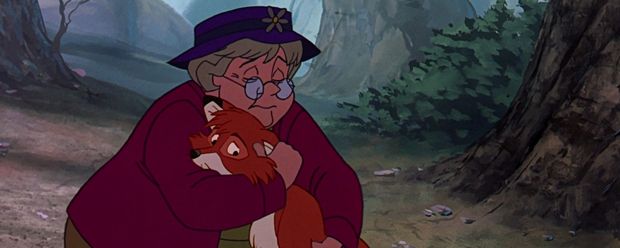 Die alte Witwe Tweed war bisher wie eine Mutter für den kleinen Fuchswaisen Cap, sie nahm ihn bei sich auf und zog ihn liebevoll groß. Doch weil sie ahnt, dass es wegen des benachbarten Jägers allmählich zu gefährlich für ihn wird, setzt sie ihn eines Tages allein im Wald aus. Den Schmerz, den sie dabei empfindet, können wir nur allzu gut nachvollziehen.