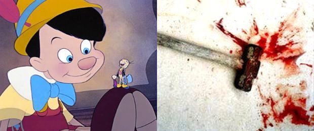 Und so grausam war's vorher: In den Geschichten des Italieners Carlo Collodi, der die Erzählungen von dem hölzernen Bengel schrieb, geht es etwas ruppiger zur Sache: Um den lästigen Ratschlägen von Jiminy zu entgehen, haut Pinocchio die arme Grille einfach mit einem Hammer platt. Anschließend lässt er sich mit schlimmen Gesellen ein, landet im Gefängnis und entkommt nur knapp dem Tode.