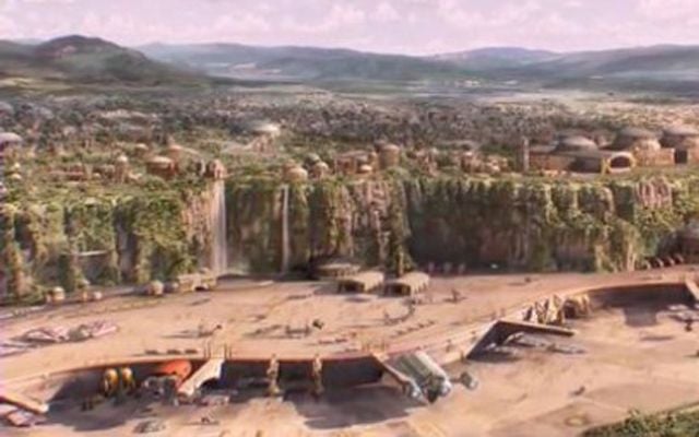 In „Angriff der Klonkrieger“, als Anakin und Padmé auf Naboo landen (unten am linken Bildrand).