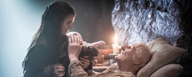 In den Büchern: Da Melisandre an der Mauer ein Ritual durchführen will und dazu dringend königliches Blut benötigt, schickt Lord Commander Jon Snow Maester Aemon, der seinen Herrschaftsanspruch einst für eine akademische Laufbahn aufgab, zusammen mit Sam und Gilly auf den Weg. Die Strapazen der Reise sind jedoch zu viel für den alten Mann. Aemon stirbt unterwegs an den Folgen einer Erkältung. Baby Sam bleibt dagegen in Castle Black: Da Mance Rayders Sohn als Nachwuchs des König-jenseits-der-Mauer ebenfalls royales Blut besitzt, vertauscht Jon das Kind des Wildlings kurzerhand mit Gillys Baby. Als diese Jons Trick bemerkt, ist sie mit dem Kuckuckskind bereits auf hoher See. Der jungen Mutter bricht angesichts dieses Verrats verständlicherweise das Herz.