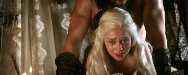 In der Serie: Nach der Hochzeit von Daenerys (Emilia Clarke) und Drogo (Jason Momoa) kommt es zum Beischlaf, wobei sich die zukünftige Drachenmutter alles andere als wohlfühlt. Weinend kommt sie ihrer ehelichen Pflicht nach, die in dieser Form nichts anderes als eine Vergewaltigung darstellt.