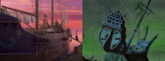Das Schiff gerät in einen fürchterlichen Sturm, der das Schiff kentern lässt. Eine Theorie besagt, dass es sich bei dem Wrack, in dem „Arielle, die Meerjungfrau“ und ihr fischiger Freund Fabius nach verborgenen Schätzen suchen, um ebendieses gesunkene Schiff des Königspaares handelt. Eine gewisse Ähnlichkeit lässt nach einem Vergleich der hölzernen Segler wohl kaum bestreiten. Ein Blick auf die Seekarte könnte ein weiteres Indiz sein: Arendelle liegt bekanntlich in Norwegen, die Geschichte der kleinen Meerjungfrau spielt sich in den Gewässern vor der dänischen Küste ab. Die geographische Nähe der beiden skandinavischen Länder lässt die Vermutung nahe, dass das Unglückschiff diesen Kurs gen Süden aufgenommen hat. Eine weitere Aussage der beiden Regisseure Jennifer Lee und Chris Buck machte diese Theorie jedoch zu Nichte.