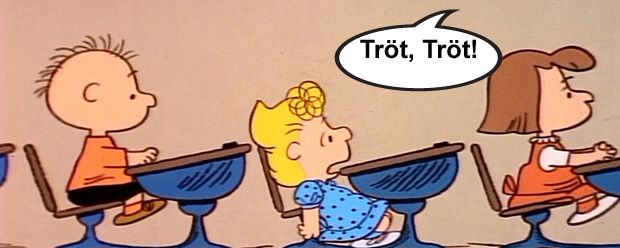 Snoopy und sein Vogelfreund Woodstock können zwar auch nicht sprechen, aber noch überraschender ist, dass die Erwachsenen in der Welt von Charlie Brown lediglich seltsame Posaunen-Laute von sich geben.