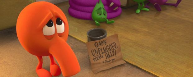 In Disneys „Ralph reichts“ wimmelt es nur so vor Cameo-Auftritten legendärer Videospielhelden. Eine kleine „Sprech“-rolle hat dabei auch Q-Bert, dessen unverständliche Sprache mittels Sprechblasen und Symbolen illustriert wird – was die Sache aber auch nicht einfacher macht.