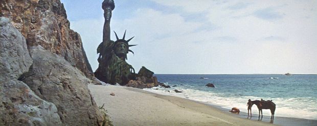 Unvergesslich ist natürlich der Augenblick, in dem der von Charlton Heston gespielte Protagonist in der letzten Szene des Films erkennt, dass hinter dem mysteriösen Affenplaneten seine Heimat, Mutter Erde, steckt. Wenn er die Überreste der Freiheitsstatue erblickt, erschöpft auf die Knie fällt und mit opernhafter Dramatik gen Himmel schreit „Ihr Wahnsinnigen! Ihr habt die Erde in die Luft gesprengt! Ich verfluche euch! Ich verfluche euch, euch alle!“, haben wir als Zuschauer einen der legendärsten Momente der Kinogeschichte miterlebt.