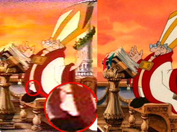 Ein ganz und gar unheiliges Bild: Bei der Hochzeit von Vanessa und Prinz Eric haben damals einige Zuschauer eine verdächtige Wölbung in Schritthöhe des Priesters als erigiertes Glied ausgelegt. Obwohl Disney klarstellte, dass es sich dabei lediglich um das Knie des Geistlichen handelte, nutzte die eine konservative christliche Organisation American Life League 1995 unter anderem dieses zweideutige Bild, um „unterschwellige sexuelle Botschaft“ anzuprangern und zum Boykott von Disney-Filmen aufzurufen.