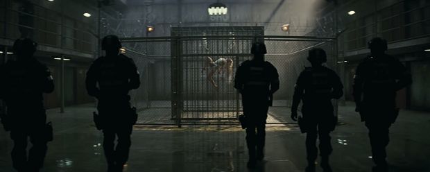 Bei dem im Trailer gezeigten Hochsicherheitsgefängnis handelt es sich ausnahmsweise mal nicht um das aus Batman bekannte Arkham Asylum, sondern das ironisch benannte Belle Reve, in dem insbesondere außergewöhnliche Superschurken gefangen gehalten werden. Hier rekrutiert die hinterlistige Regierungsangestellte Amanda Waller (Viola Davis) die schwerkriminellen Mitglieder für ihren Suicide Squad, die sie gegen deren Willen zu kontrollieren gedenkt, wie wir in dem einführenden Gespräch mit einem General mitbekommen. Und hier im Belle Reve wird auch eine der bedeutendsten Figuren des Films in gleich zwei Käfigen gefangen gehalten...