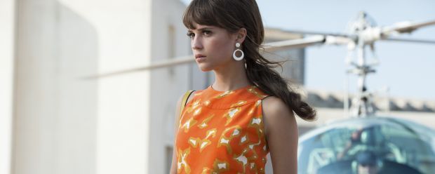 Gerade noch haben wir in der Kostümabteilung all diese stylisch-schicken 60er-Jahre-Outfits gesehen (also solche wie oben auf dem Bild). Aber als wir Alicia Vikander („Ex Machina“) kurz darauf zum Interview treffen, trägt sie weder ein keckes Flowerpower-Kleid noch eine übergroße Sonnenbrille. Stattdessen begrüßt sie uns im Blaumann – und mit Autoschmiere im Gesicht. Die von ihr gespielte Gaby Teller ist eben kein typisches Bond-Girl, sondern eine bodenständige Mechanikerin aus Ost-Berlin.