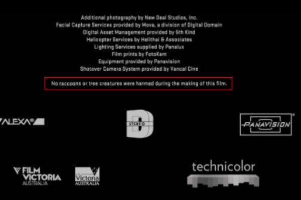Nicht nur bei ihren Animationsfilmen für die ganze Familie erlauben sich die kreativen Köpfe von Disney hin und wieder einen Spaß. Auch in dem Marvel-Abenteuer „Guardians Of The Galaxy“ bewiesen die Macher jede Menge Selbstironie: Im Abspann, der wie immer die obligatorische Post-Credit-Szene (mit niemand Geringerem als Howard the Duck!) folgt, erfahren wir, dass „weder Waschbären noch Baumkreaturen bei der Produktion des Films zu Schaden gekommen sind“. Angespielt wird damit natürlich auf den von Bradley Cooper synchronisierten CGI-Waschbären Rocket und den von Vin Diesel einsilbig gesprochen Fanliebling Groot.