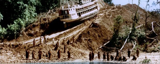 Werner Herzog, die zweite. Sein monumentales Urwald-Drama „Fitzcarraldo“ zählt nicht nur zu Herzogs ambitioniertesten Großprojekten, sondern auch zu den berühmt-berüchtigsten Filmdrehs aller Zeiten (die ganze Geschichte erzählt Les Blank in seiner grandiosen Doku „Burden Of Dreams“). Grund dafür war nicht nur der verlässlich unberechenbare Wüterich Klaus Kinski, den die am Dreh beteiligten Ureinwohner am Liebsten umgebracht hätten, sondern die wahnsinnige Mammutaufgabe, ein 320 Tonnen schweres Dampfschiff über einen Hügel zu befördern. Da Herzog für diesen strapaziösen Akt, den er trotz Anratens des Studios keinesfalls mit Hilfe von Miniaturen filmen wollte, die Manneskraft zahlreicher Ureinwohner benötigte, erwies sich der Dreh dieser Szene als schleppend, kräftezehrend und gemeingefährlich. Natürlich blieben Verletzungen nicht aus und manche Cast- und Crewmitglieder fielen auch der Ruhr zum Opfer.