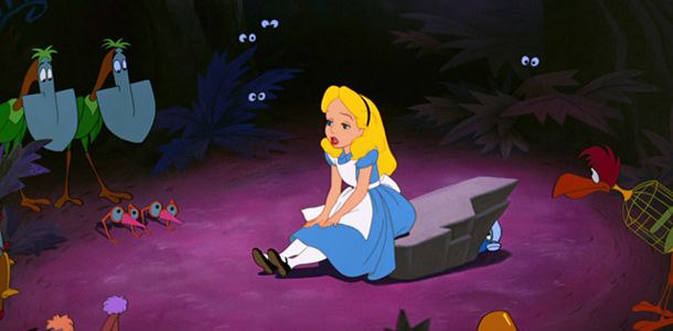 Es ist inzwischen die allgemeine Lesart, dass es sich bei dem berühmten Märchen von Lewis Carroll (und damit auch den Disney-Adaptionen) nur um die Beschreibung eines sehr bizarren Traums handelt. Während ihr die große Schwester etwas vorliest, bemerkt die junge Alice ein weißes Kaninchen, dem sie in seinen Bau folgt und schwuppdiwupp mitten in einem völlig absurden Traum landet. In ihrem Unterbewusstsein existieren Grinsekatzen genauso wie böse Herzköniginnen oder Shisha rauchende Raupen. Die Flucht aus dem Wunderland gelingt folgerichtig erst durchs Aufwachen.