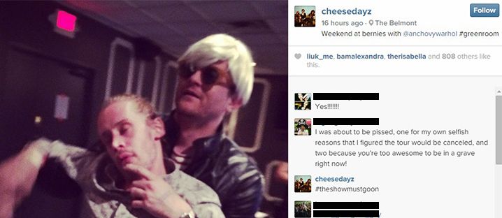 Als Macaulay Culkin Ende 2014 die im Internet kursierenden Gerüchte über seinen eigenen Tod zu Ohren kamen, befand er sich gerade auf Tour mit seiner Band „The Pizza Underground“. Spontan stellte er mit einem Kollegen eine Szene aus der 80er- Jahre-Komödie „Immer Ärger mit Bernie“ nach, in der es um zwei Angestellte geht, die versuchen, den Tod ihres Chefs zu verheimlichen: