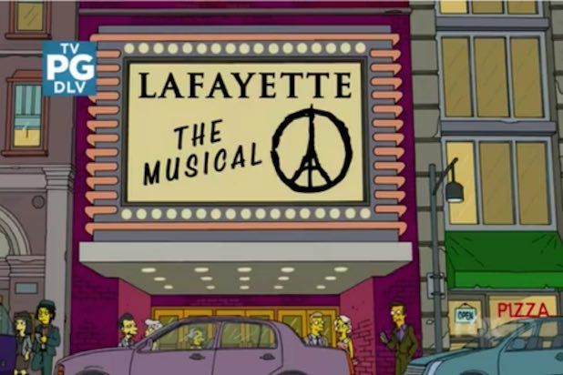 Die Macher der „Simpsons“ gedachten der Opfer der Terror-Anschläge in Paris mit einer kleinen, aber feinen Geste. In der aktuellen Episode „Lisa with an S“, die am vergangenen Sonntag (22.11.2015) im US-Fernsehen ausgestrahlt wurde, verschlägt es Liza Simpson nach New York, wo sie den berühmten Broadway mit seinen zahlreichen Theatern entlang schlendert. Auf der Anzeigetafel eines Schauspielhaus versteckten die Serien-Macher ihre Botschaft: Der Titel des Musicals lautet „Lafayette“ und wird ergänzt durch das „Peace For Paris“-Symbol des Künstlers Jean Julien, das den Eiffelturm, das Wahrzeichen der französischen Hauptstadt, und das Peace-Symbol in einem Bild verschmelzen lässt (via TheWrap).