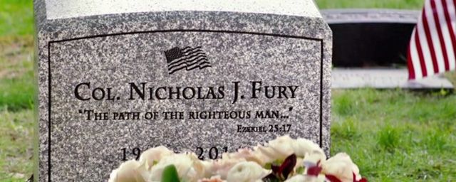 Auf Nick Furys Grabstein in „Captain America 2“ ist „'The path of the righteous man...' (Ezekiel 25:17)“ zu lesen - ein Fragment von Samuel L. Jacksons legendärem Bibelzitat aus „Pulp Fiction“.