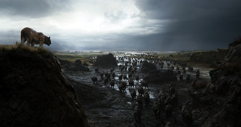 Während der Inhalt also auf den ersten Blick unangetastet bleibt, werkeln Favreau und sein Team kräftig an der Verpackung. Denn sie intensivieren die dramatischen Momente, wollen aber gleichzeitig die Leichtigkeit von „Das Dschungelbuch“ bewahren. Wie das gelingen soll, illustriert ein uns präsentierte Ausschnitt, in dem Panther Baghira (Stimme: Ben Kingsley) versucht, Mogli zu den Menschen zurückzubringen, da Shir Khan inzwischen eine zu große Gefahr für das Kind darstellt. Kurz bevor sich die beiden Freunde voneinander verabschieden, versucht der Tiger allerdings, Mogli zu töten, was in einer kurzen wie wuchtig inszenierten Auseinandersetzung zwischen Baghira und Shir Khan mündet. In diesem Augenblick, in dem sie donnernde Prankenhiebe austauschen und ihr Gebrüll die Musik übertönt, ist „The Jungle Book“ im besten Sinne modernes Blockbusterkino.