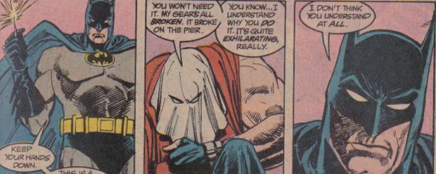 Autor Sam Hamm führt hier die Figur des Henri Ducard ein. Viel wichtiger ist aber, dass er einen interessanten neuen Blickwinkel auf die Origin-Story des dunklen Ritters wählt und dabei auf ein plausibles psychologisches Grundgerüst setzt.