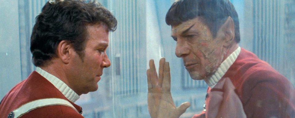 „Das Wohl von vielen wiegt schwerer als das Wohl von wenigen, oder eines einzelnen.“ Tödlich verwundet, aber immer noch auf Rache sinnend zündet Kirks Widersacher Khan (Ricardo Montalban) die Genesis-Sonde, welche die Enterprise samt Crew vernichten würde. Um dem schwer beschädigten Raumschiff die Flucht zu ermöglichen, repariert Spock persönlich den Warpantrieb, stirbt dabei jedoch an einer tödlichen Strahlendosis.