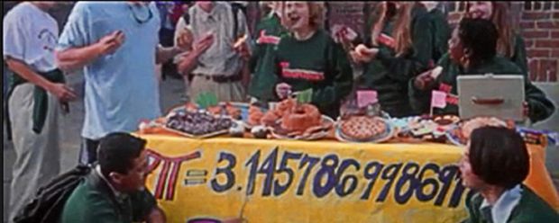 In der romantischen Komödie „Ungeküsst“ geht die Journalistin Josie Geller (Drew Barrymore) undercover zurück an die High School – und wird dort auch Teil des Mathe-Teams. Aber ganz ehrlich: Wer diese Zahl beim Kuchenverkauf des Teams für Pi hält, der wird bei Mathe-Wettbewerben eh keinen Blumentopf gewinnen: