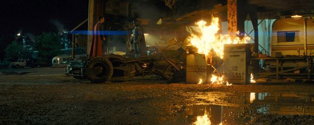 Während das Batmobil tatsächlich (mit aufgestockter Bewaffnung) am Set steht (und sogar voll fahrtauglich ist), wird der Flying Fox komplett am Computer entstehen. Eine Reihe von Konzeptzeichnungen, auf denen sich das gigantische Flugzeug aus dem Wasser in die Luft erhebt, lassen aber auf eine wahrhaft imposante Erscheinung schließen.