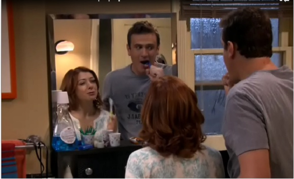 In der Episode „Die perfekte Woche“ (5x14) kommt heraus, dass sich Lily und Marshall eine Zahnbürste teilen – und dass sie sich sogar eine Zahnbürste mit dem unwissenden Ted geteilt haben, als sie noch gemeinsam in einer Wohnung lebten. Aber in der ersten Staffel, nämlich in der Folge „Nur nichts überstürzen“ (1x14), sieht man Lily und Marshall gemeinsam im Badezimmer, jeder mit einer EIGENEN Zahnbürste.