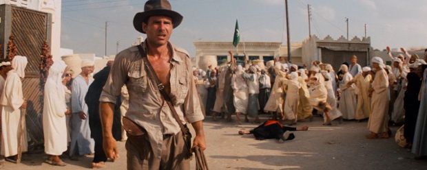Und gleich noch einmal Steven Spielberg: Die Szene, in der Indiana Jones (Harrison Ford) seinen Säbel schwingenden Kontrahenten mir nichts dir nichts über den Haufen ballert, war ursprünglich gar nicht so lustig konzipiert. Im Drehbuch stand eigentlich eine tüchtige Rauferei zwischen den beiden, doch der zum Zeitpunkt des Drehs ruhrkranke Ford schlug Spielberg der Einfachheit halber vor, seinen Kontrahenten einfach mit einer Kugel abzuservieren.