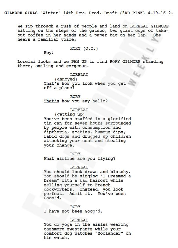 Nein, Bilder gibt es zu den ersten Sekunden der achten Staffel von „Gilmore Girls“ noch nicht. Dafür veröffentlichte Entertainment Weekly jetzt die erste Seite des Drehbuchs zu „Gilmore Girls – A Year in the Life“, wie die Fortsetzung mittlerweile heißt. Und auch wenn es sich eigentlich nur um einen Dialog in Schwarz auf Weiß handelt – Stars Hollow ist sofort wieder präsent. Aber lest selbst: