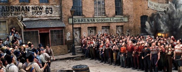 Bühnenbildner Dante Ferretti („Aviator“) errichtete einen knapp zwei Kilometer langen Straßenzug mit originalgetreuen Bauwerken des New Yorker Armenviertels Five Points (u. a. ein Saloon, ein Theater und ein Casino). Darüber hinaus wurde ein Abschnitt der Uferpromenade des East River nachgebaut – inklusive zweier lebensgroßer Segelschiffe. Als Filmemacher George Lucas („Star Wars“) das Set besuchte, soll er gesagt haben: „So etwas kann man doch mittlerweile im Computer machen!“