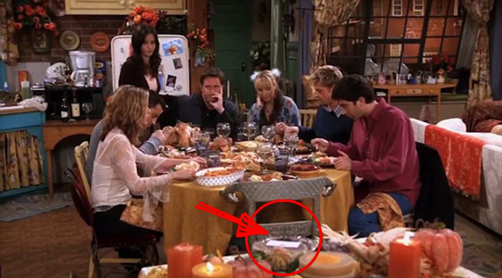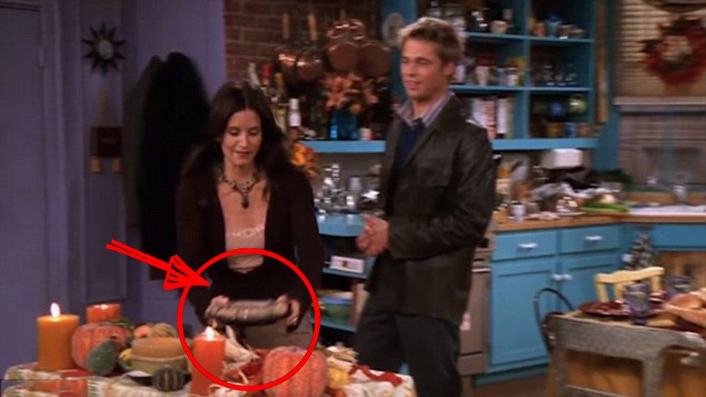 Nachdem besagte Folge erst kürzlich zu Thanksgiving in den USA erneut ausgestrahlt wurde, fiel einigen Zuschauern folgender Fehler auf: Das süße Feier-Mitbringsel von Will (Pitt) ist plötzlich wie vom Erdboden verschluckt! Dabei handelt es sich um einen Kuchen, der laut Diät-Guru Will so gesund wäre, dass man ihn genauso gut aus dem Fenster schmeißen könne. Monica (Courteney Cox) aber stellt Wills Kuchen dennoch auf den reich dekorierten Tisch.