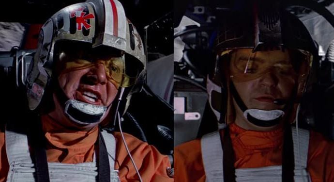 Die Szenen stammten aus dem berühmten Rebellenangriff auf den Todesstern am Ende von „Star Wars 4“. „Dank der Magie von ILM konnten sie daran herumschneiden, sie manipulieren und in unsere Cockpits packen.“ Wie auf Star Wars News Net zu lesen ist, sollen die Auftritte der aus „Eine neue Hoffnung“ bekannten Piloten Garven „Red Leader“ Dreis (Drewe Henley) und Jon „Gold Leader“ Vander (Angus MacInnes) – siehe Bild via Star Wars News Net – auf diese Art in „Rogue One“ integriert worden sein. Beide fliegen in der finalen Schlacht mit, obwohl die Schauspieler heute natürlich viel zu alt für ihre Rollen sind (Henley verstarb sogar im Februar 2016). Wie Star Wars News Net in Erfahrung gebracht hat, nahmen MacInnes und Henley (noch vor seinem Tod) zudem neue Dialoge auf, die im Film zu sehenden Figuren stammten aber aus dem bearbeiteten Archivmaterial, das Edwards fand.
