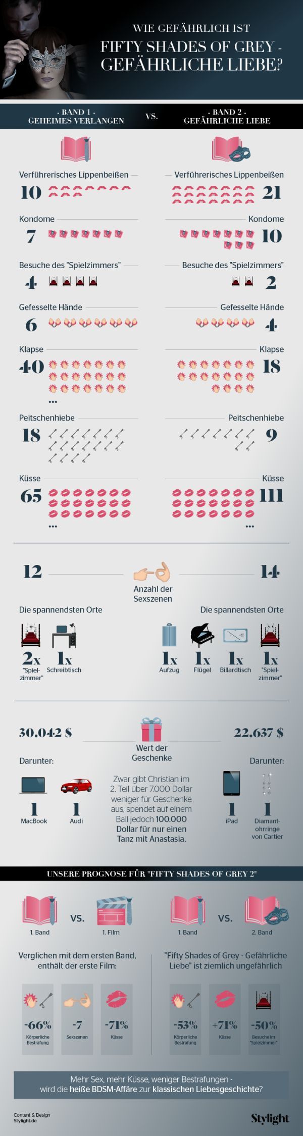 Wenn man die Bücher „Fifty Shades Of Grey“ und die Fortsetzung „Fifty Shades Of Grey 2 – Gefährliche Liebe“ genau auswertet, kommt man zu einem eindeutigen Ergebnis: mehr Liebe, weniger Hiebe! Ob das im Film auch so wird?