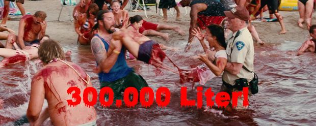 Für sein Remake von Joe Dantes („Gremlins - Kleine Monster“) „Piranhas“ aus dem Jahr 1978 verwendete Regisseur Alexandre Aja („High Tension“) laut eigener Aussage rund 300.000 Liter Kunstblut. Sogar ein ganzer See wurde damit rot gefärbt, indem ein Tanklaster stetig Kunstblut hineinpumpte. Aja selbst erklärte die verwendete Menge in einem Interview mit Vulture übrigens höchst wissenschaftlich: „Es sollten sich 20.000 Teenager am See aufhalten – und wenn man medizinisch korrekt sein will und jeder davon ungefähr fünf bis sechs Liter Blut in sich hat, dann kommt nun mal eine solch riesige Menge zusammen.“