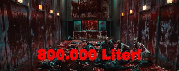 Regisseur Drew Goddard sagte in einem Interview mit NBC, dass er sich nicht mehr an die genaue Menge verwendeten Filmbluts erinnere, es aber eine enorme Menge gewesen sei. Fran Kranz, einer der Hauptdarsteller, wurde gegenüber BloodyDisgusting genauer: „Mir wurden erzählt, dass es fast 800.000 Liter waren. Das ist doch krank!“ Ob diese unfassbare Zahl wirklich stimmt, wissen wir auch nicht sicher. Klar ist aber: Seinen Platz unter den blutigsten Horrorfilmen aller Zeiten hat „The Cabin In The Woods“ mit seinem monsterreichen Splatter-Matsch-Finale auf jeden Fall sicher!