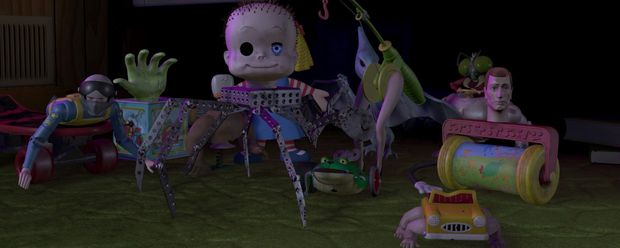 Als Buzz Lightyear und Woody in die Gefangenschaft von Sid geraten, entpuppt sich das Kinderzimmer des grausamen Nachbarsjungen als echte Spielzeug-Hölle! So gibt es dort etwa einen superunheimlichen Puppenkopf, der auf Spinnenbeine montiert ist und die beiden Helden mit seinem einen Auge anstarrt. Und auch Sids andere Spielzeuge sind nicht gerade das, was man als verantwortungsvolle Eltern seinen Kindern zu Weihnachten schenken würde…