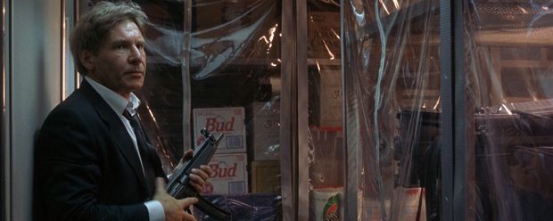 Ein US-Präsident, der nicht nur in jeder Situation die moralisch richtige Entscheidung trifft, sondern die bestehende Weltordnung notfalls auch noch mit Fäusten verteidigt: James Marshall (Harrison Ford) aus „Air Force One“ ist ein Amtsträger wie aus dem Bilderbuch, ein Staatsoberhaupt, von dem man in der Wirklichkeit wohl leider nur träumen kann. Leibwächter benötigt der Präsident hier gar nicht erst, vielmehr überwältigt er kasachische Terroristen, die sein Flugzeug unter ihre Kontrolle bringen wollen, eigenhändig und kompromisslos. Wenn Marshall die Eindringlinge kurz zuvor entschlossen über seine hohe Position aufklärt („Ich bin der Präsident der Vereinigten Staaten!“), ist dies also in erster Linie als Warnung zu verstehen. Der mächtigste Mann der Welt erweist sich in Wolfgang Petersens „Air Force One“ zugleich auch als der stärkste und mutigste – nicht zuletzt dank eines blendend aufgelegten Hauptdarstellers, dessen unerschütterliche Integrität ganz selbstverständlich wirkt. Kein Wunder, denn schließlich stecken in ihm mit Indiana Jones und Han Solo auch noch zwei der größten Kinohelden aller Zeiten!