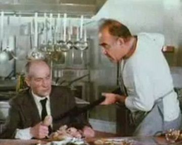 In Deutschland wurde de Funès‘ Popularität ähnlich wie bei den Filmen von Bud Spencer und Terence Hill noch durch die unkonventionelle Synchronisation gesteigert: Die Bearbeitungen entfernten sich oft recht weit vom originalen Sinn und glänzten dafür mit Kreativität und Wortwitz. Die ekstatische Verbalhysterie de Funès‘ wurde dabei von seinem langjährigen Sprecher Gerd Martienzen großartig eingefangen. In „Brust oder Keule“ zeigt das nur 1,64 Meter große Energiebündel einen seiner legendärsten Auftritte (da kann sonst höchstens noch „Die Abenteuer des Rabbi Jakob“ mithalten): De Funès spielt den gefürchteten Restaurant-Kritiker Duchemin, dem in der genialsten Szene in dieser erstaunlich weitsichtigen kulinarischen Komödie in einer Lebensmittelfabrik (die grünen Hähnchen) völlig zu Recht einmal mehr die Gesichtszüge entgleisen.