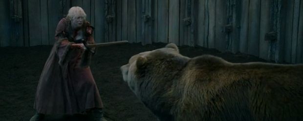 Eine Episode mit Licht und Schatten: Jaime, der eigentlich schon auf dem Weg nach King's Landing ist, kehrt nach Harrenhal zurück, um Brienne zu retten, die mit einem Holzschwert gegen einen ausgewachsenen Bären kämpfen muss - aus anfänglichem Misstrauen ist Respekt und Freundschaft geworden, was bei dieser Figurenkonstellation nun wirklich nicht zu erwarten war. Unangenehm selbstzweckhaft wirkt dagegen der Handlungsstrang um die Folter des Eisenmanns Theon durch Ramsay – der schickt dem Opfer aus purer Grausamkeit zwei Gespielinnen und lässt der Verführung dann prompt die Kastration folgen. Das ist schon ein rabiater und erzählerisch kaum gerechtfertigter Gebrauch von Sex und Gewalt.
