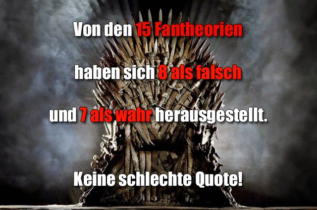 Oft schießen Fantheorien total über das Ziel hinaus, manchmal entpuppen sie sich aber auch als zutreffend. Wir prüfen die Trefferquote von 15 „Game Of Thrones“-Theorien, die sich bereits als wahr oder falsch herausgestellt haben.