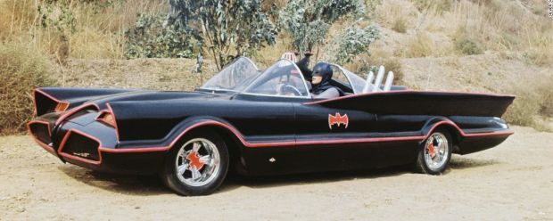 Das berühmt-berüchtigte Batmobil wird von fast jeder Inkarnation des Helden im Fledermausanzug gefahren. Bei der 60er Jahre-Version handelt es sich um den 1955er Lincoln Futura, ein nie in Serie gegangenes Konzeptfahrzeug, das von Batman (Adam West) mit einigen nützlichen Zusatzfunktionen ausgestattet wurde. Darunter der Bat-Bordcomputer, der Bat-Magnet, der Bat-Sicherheitsgurt, ein spezielles Bat-Kofferraumschloss, ein vielseitig verwendbarer Bat-Strahl, mit dem sich unter anderem Türen öffnen lassen, ein Bat-Telefon, der Bat-Fallschirm, der es Bruce Wayne erlaubt, enge Kurven mit Vollspeed zu nehmen und nicht zuletzt das automatische Bat-Fallschirmeinsammelsignal. Letzteres informiert die Behörden, wenn der nicht mehr benötigte Fallschirm von der Straße geräumt werden soll - Ordnung muss schließlich auch bei der Verbrecherjagd sein.