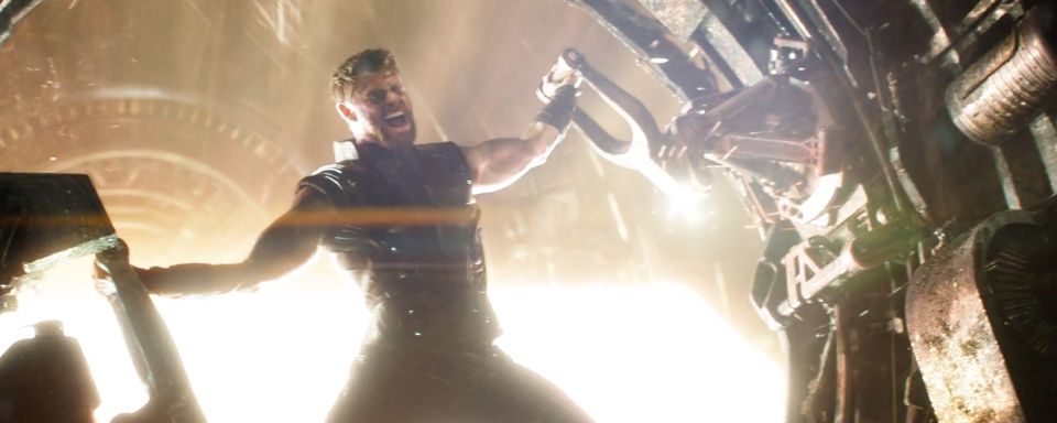 Da Thor (Chris Hemsworth) auf die Guardians Of The Galaxy trifft, wissen wir bereits, dass er das erste Aufeinandertreffen mit Thanos (Josh Brolin) überlebt. Daneben sehen wir ihn in einer komischen Maschine hängen (siehe Bild). Hilft er hier Loki, um alle Bewohner Asgards auf seinem Raumschiff in Sicherheit zu bringen? Sehr gut möglich.