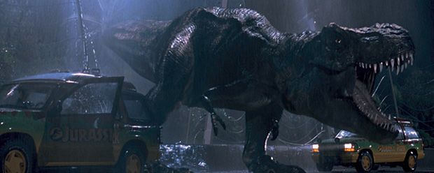 In seinem 1993 erschienenen Meisterwerk „Jurassic Park” lässt Steven Spielberg Dinosaurier, die im namensgebenden Freizeitpark auf einer Insel bei Costa Rica bewundert werden können, aus ihren Gehegen ausbrechen und Jagd auf die Menschen machen. Das erste Mal richtig ernst wird es für den Paläontologen Dr. Grant (Sam Neill), den Physiker Dr. Malcom (Jeff Goldblum) sowie die Kinder Tim (Joseph Mazzello) und Lex (Ariana Richards), als ihre Besichtigungstour, die sie mit zwei automatisch fahrenden Jeeps absolvieren, plötzlich unterbrochen wird. Ausgerechnet vor dem Gehege des Tyrannosaurus kommen die Wagen zum Stehen und der gigantische Fleischfresser bricht nicht nur prompt aus seinem Gefängnis aus, sondern hat auch noch ordentlich Hunger. Der clevere Dr. Grant weiß sich mit Köpfchen zu wehren (Stichwort: „Nicht bewegen!”), doch auch heute noch lässt die Szene, bei der der animatronisch zum Leben erweckte T-Rex verblüffend real aussieht, dem Zuschauer wahrlich das Blut in den Adern gefrieren.