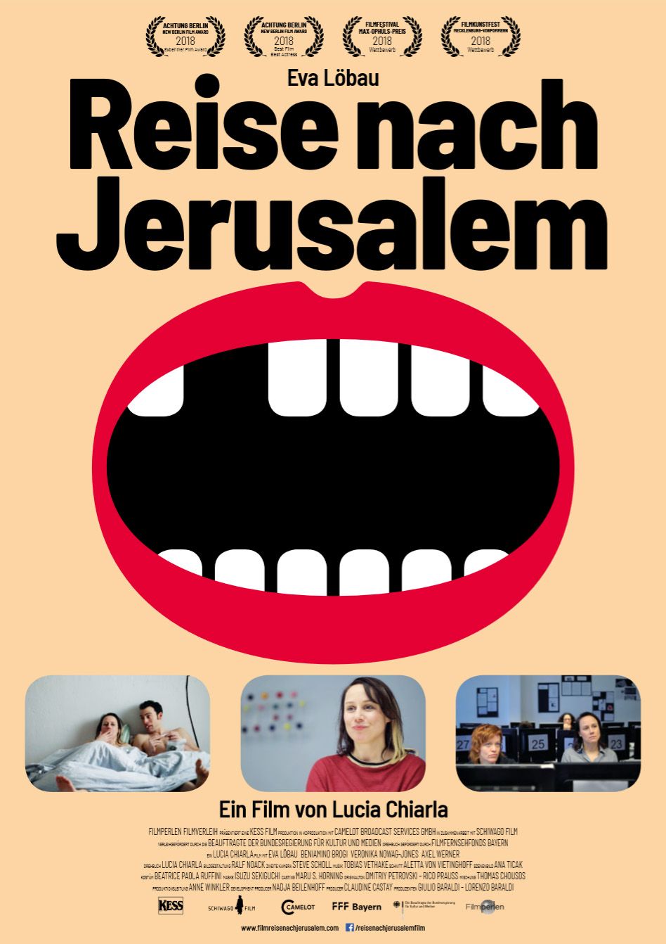 In dem auf ihrem eigenen gleichnamigen Kurzfilm von 2011 basierenden Spielfilmdebüt „Reise nach Jerusalem“ erzählt Lucia Chiarla eine gar nicht so unwahrscheinliche Geschichte. Aber sie tut dies nicht etwa in Form eines Sozialdramas, wie es bei dem Stoff eigentlich auf der Hand liegen würde, sondern präsentiert stattdessen eine mit viel Biss und Herz gewürzte Tragikomödie. Auf dem diesjährigen „Achtung: Berlin“-Filmfestival war „Reise nach Jerusalem“ mit diesem Ansatz der große Abräumer. Schließlich gewann die Tragikomödie nicht nur den Preis für den Besten Film, die wieder mal großartige Eva Löbau („Der Wald vor lauter Bäumen“, „Unknown Identity“) wurde zudem auch völlig verdient als Beste Schauspielerin ausgezeichnet.