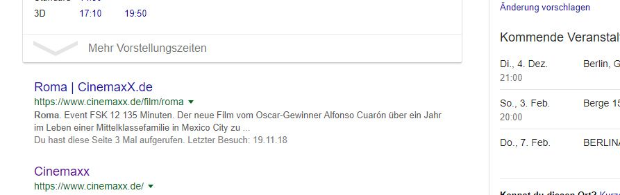 Heute, am 20. November 2018, schien sich dann aber endlich jemand gefunden zu haben. So wurde berichtet, dass die Kinokette CinemaxX „Roma“ ab dem 6. Dezember zeigen werde. Laut Blickpunkt: Film sei dies von der Pressestelle sogar bereits bestätigt worden. Und auch bei Google lässt sich bei CinemaxX ein Eintrag zu „Roma“ samt einiger Vorschau-Informationen finden. Wer allerdings auf den Link klickt, bekommt lediglich eine Fehlermeldung zu sehen.