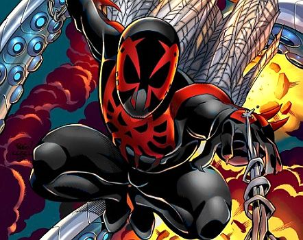 Miguel O’Hara lebt auf Erde-928 im New York (bzw. Nueva York) des Jahres 2099 und versucht, die Kräfte des ursprünglichen Spider-Man Peter Parker zu reproduzieren. Dabei kommt es zu einem Unfall, bei dem seine DNS mit der einer Spinne überschrieben wird – er erhält seine Kräfte also nicht durch den Biss einer radioaktiven Spinne. Dadurch verfügt er über ähnliche Kräfte wie Spider-Man, hat allerdings auch ausfahrbare Krallen und einen lähmenden Biss. Miguel arbeitet in den Comics für die Firma Alchemax, die ja auch in „Spider-Man: A New Universe“ eine wichtige Rolle spielte.