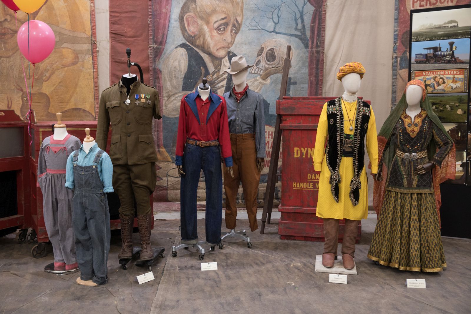 „Die Kostüme sind eine Mischung aus historischen Vorbildern und eigenen Ideen. Aber der Ausgangspunkt ist immer die Realität. Es gibt berühmte Zirkus-Museen in Baraboo, Wisconsin und Sarasota, Florida – von dort stammt unsere ursprüngliche Recherche. Dort gibt es nämlich nicht nur Materialien der großen, bekannten Zirkusse, sondern auch von vielen kleinen Wanderzirkussen, die heute längst niemand mehr kennt. Diese Fotos waren immer der Anfang – und dann haben wir die Kostüme manchmal noch in verschiedene Richtungen weiterentwickelt. Außerdem habe ich 15 – 20 Kleider entdeckt, die angeblich noch aus ‚Die größte Schau der Welt‘ stammen, der 1953 den Oscar als Bester Film gewonnen hat. Die sind zwar schon ziemlich auseinandergefallen, aber ich habe da irgendwie eine Verbindung gespürt. Deshalb habe ich sie – soweit es ging – wieder reparieren lassen.“