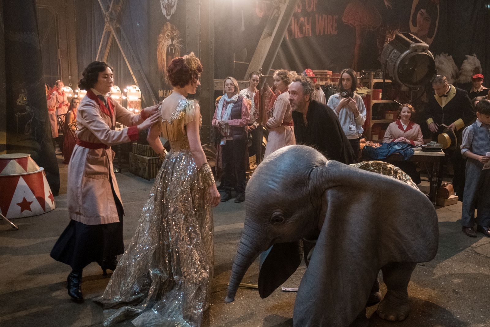 Im Gegensatz zum Original, das im Jahr 1941 spielt („Dumbo“ war damals der erste Disney-Zeichentrickfilm, der in der Jetzt-Zeit angesiedelt ist), finden die Ereignisse in der Neuauflage exakt 100 Jahre vor dem Kinostart, also im Jahr 1919 statt – zum einen, weil sich damals gerade die Mode weg von kleinen Wanderzirkussen hin zu großen Vergnügungs-Anlagen entwickelte, und zum anderen, weil so kurz nach dem Ende des Ersten Weltkriegs die Magie ein Stück weit verschwunden war und es deshalb so gut passt, dass ein kleiner fliegender Elefant sie den Menschen wieder zurückbringt. Am deutlichsten wird dieser Bezug in der Rolle von Colin Farrell als ehemaliger Pferde-Artisten Holt Farrier, wie uns der Schauspieler am Set erzählt: