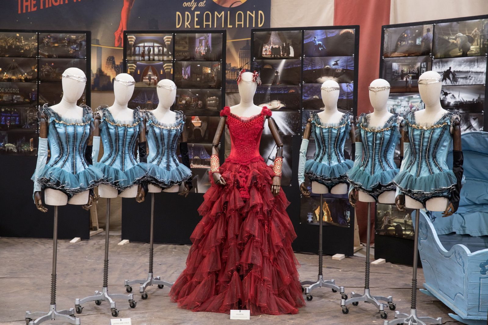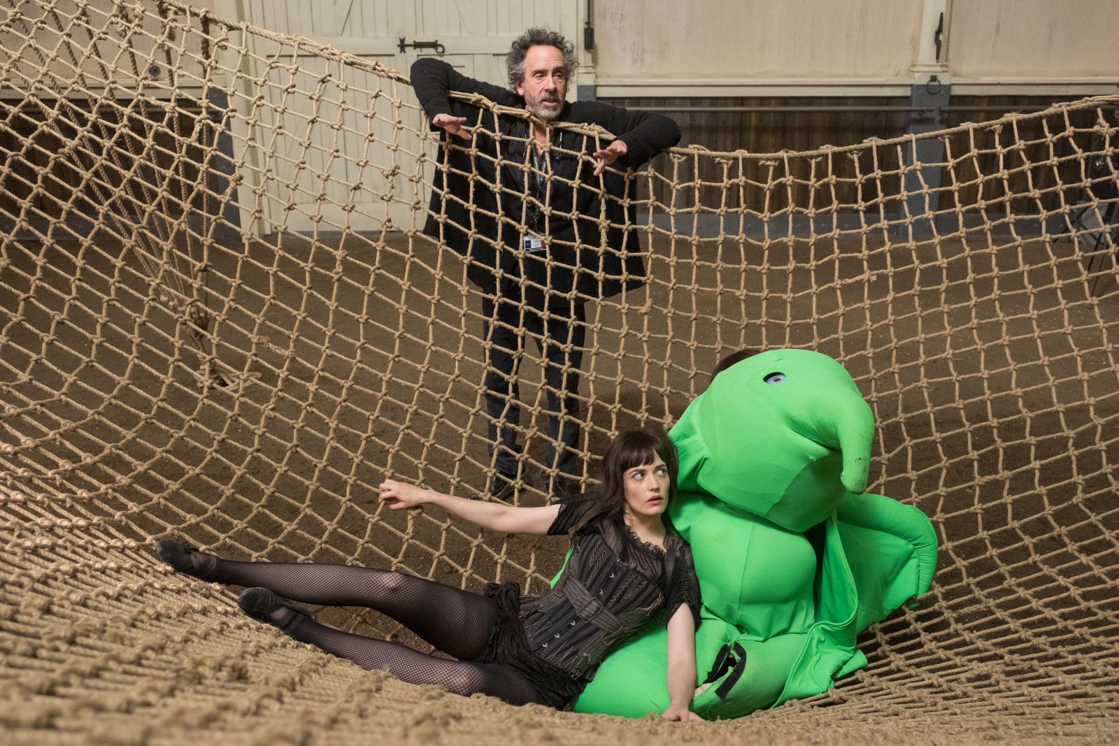 Nachdem Dumbo zunächst im kleinen Wanderzirkus vom Direktor Max Medici (Danny DeVito) aufwächst, ist mit „gigantischerem Spektakel“ der Vergnügungspark Dreamland des größenwahnsinnigen Geschäftsmanns V. A. Vandevere (Michael Keaton) gemeint, zu dessen Star Dumbo im über das Original hinausgehenden Teil der Handlung avanciert. Und davon, wie „gigantisch“ diese Spektakel wirklich ist, können wir uns an diesem Tag selbst einen Eindruck machen – denn es wird gerade im Dreamland gedreht: Wir schreiten durch ein großes Tor einen erstaunlich langen Boulevard entlang – an der einen Seite vollständig ausgestaltet mit Geschäften und Buden, auf der anderen ein riesiger Green Screen.