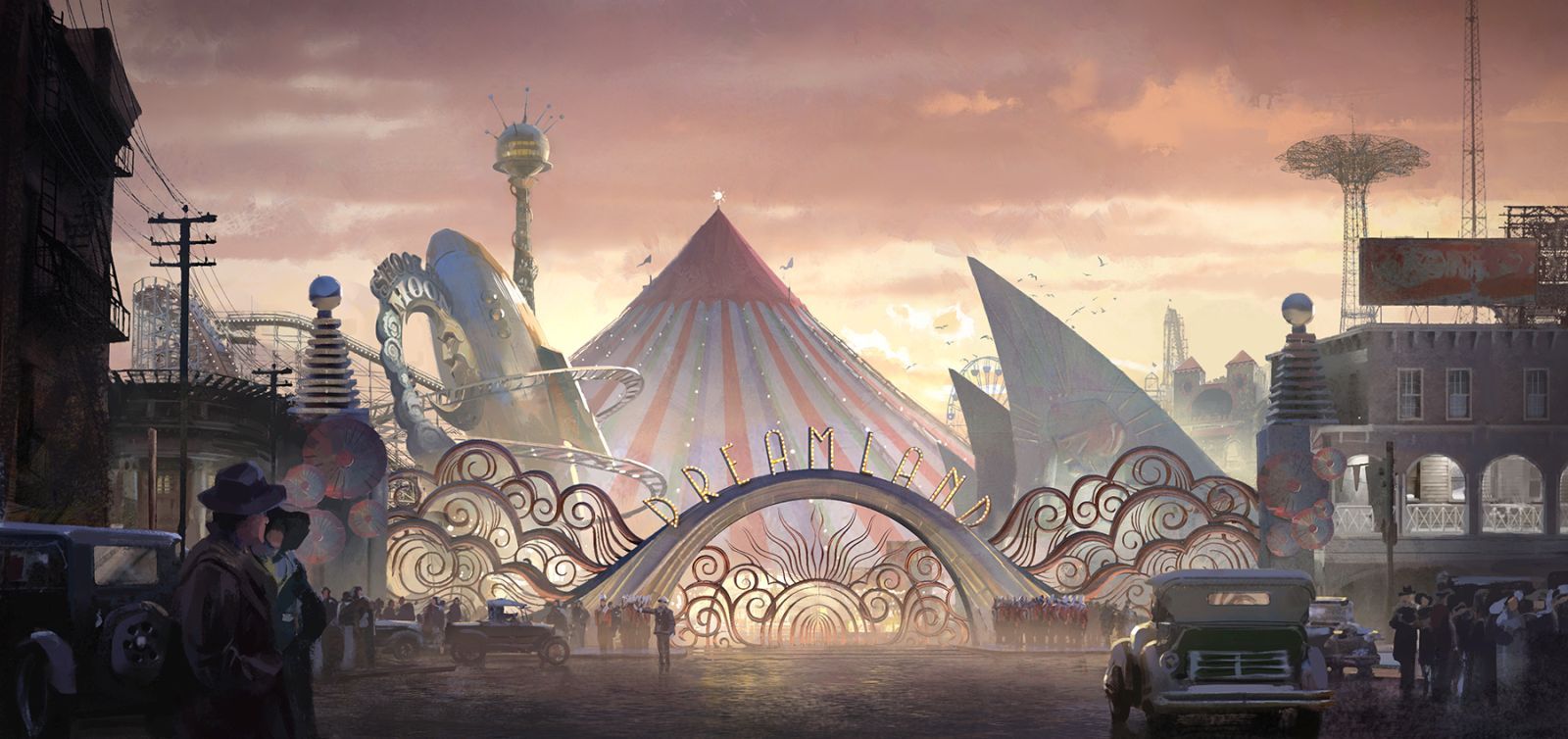 „Wir mussten schon allein deshalb in England drehen, weil es in den USA keine Studiohalle gibt, die groß genug für Dreamland wäre. Auch in dieser Halle hier in Pinewood ist es das größte Einzelset, das hier jemals errichtet wurde. Und falls es euch noch nicht aufgefallenen ist: Es gibt in diesem ganzen Set keine geraden Linien.“