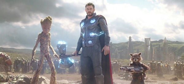 Was an der Szene besonders ist: Thor, Rocket und Groot erreichen in bester Gandalf-Manier in letzter Minute das Schlachtfeld.